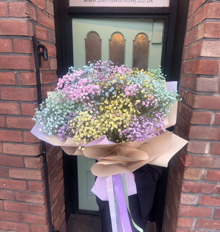 Soft pinks, buttery yellows, lilacs and blues.... because one colour just isn't enough for her!! Comes in wrap and multicoloured ribbon (no water)